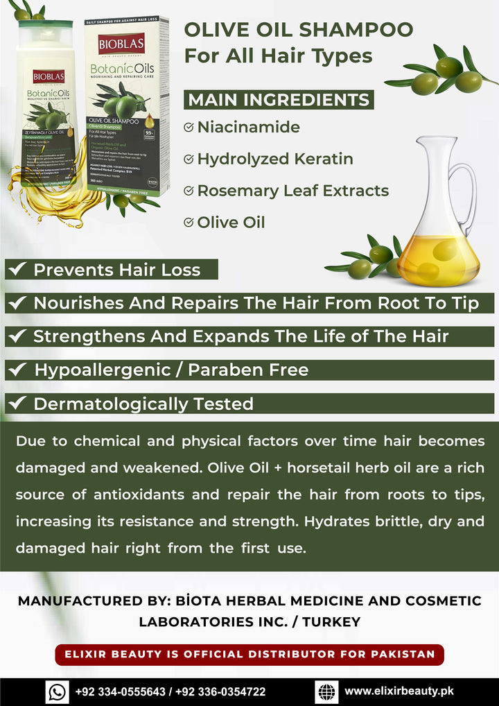 Bioblas Olive Shampoo With its formula containing horsetail oil and organic olive oil against hair loss, it helps strengthen weak hair by regaining the healthy appearance that the hair has lost...